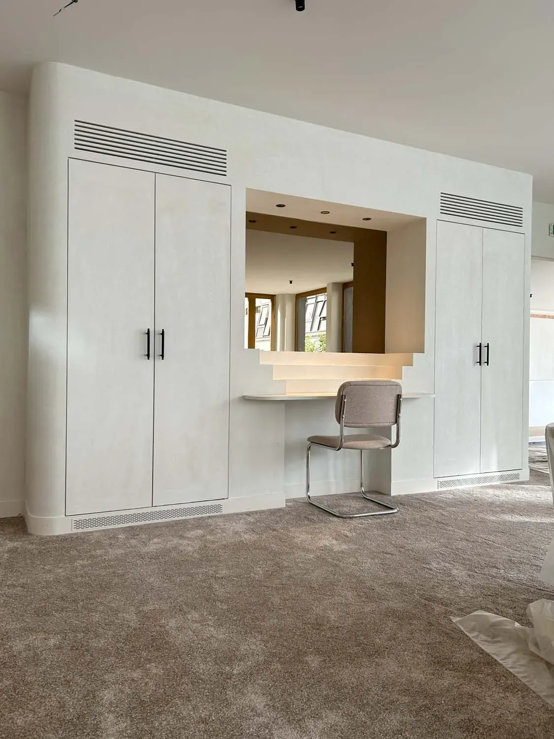 Consultez nos réalisations pour les particuliers : dressings sur mesure, cuisines fonctionnelles, espaces de rangement optimisés et mobilier personnalisé. Chaque aménagement est conçu pour allier design, confort et praticité au cœur de votre intérieur.
